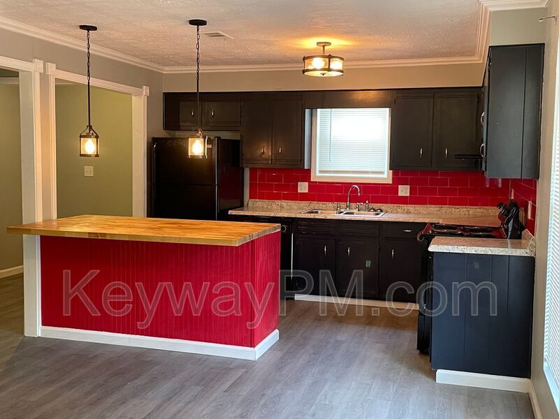 Available Now. Located in the South Augusta area, this beautifully updated three-bedroom, two-bath brick home is move-in ready. Open floor plan with full view of dining room, great room and kitchen. The beautiful kitchen features a breakfast bar, new kitchen counters and black appliances. Red subway tile kitchen counter backsplash is an eye catcher that goes great with the black cabinets and accent color on the island. Other amenities include a 5 x 5 open room next to the kitchen (office or pantry), large primary bedroom, primary suite bath with new vanity, toilet and tub/shower surround, and the hall bathroom also with a new vanity and tub surround. Large laundry room can accommodate a full-size washer and dryer and the backyard is a great place for entertaining. Gas and Electric Utilities. Yard is not fully fenced. Small dogs only permitted with approval and monthly pet fee. Breed restrictions apply. Visit our website for breed restriction information. Pictures depict layout only, view for current colors/condition. All information contained herein deemed reliable but not guaranteed. School zones must be verified as they are subject to change. For more information, please call Keyway Property Management at 706-922-6390. To schedule a showing, please visit www.keywaypm.com.