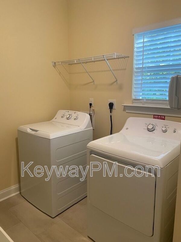 A separate laundry room includes a washer and dryer.